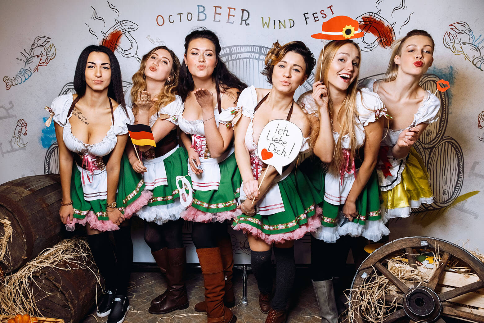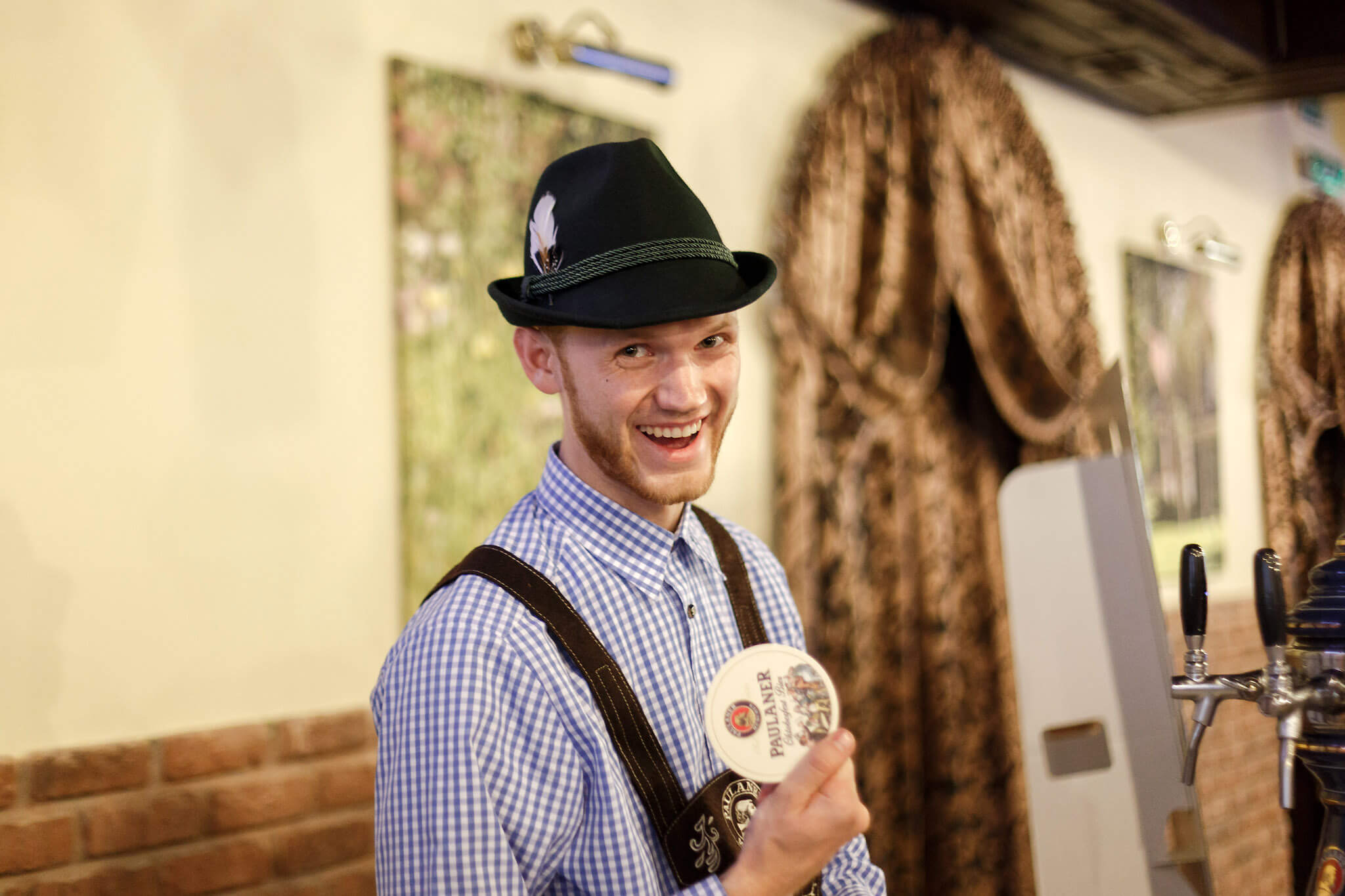 В помещении ресторана была создана атмосфера настоящей Баварии: пышногрудые девушки, флаги, претцелы, и много-много пива.